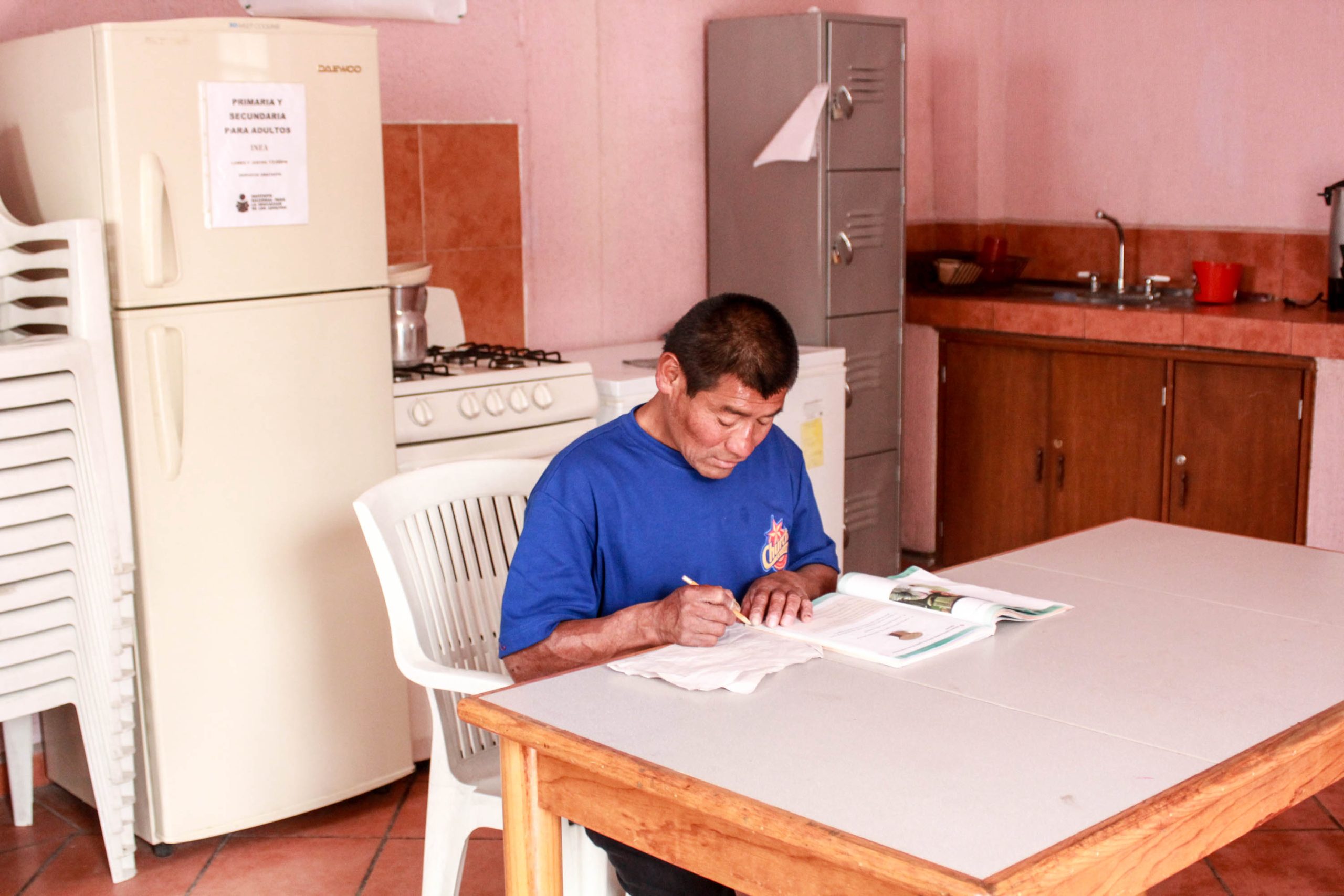 Abraham a sus 50 años de edad y en situación de calle es beneficiario de un programa de educación para adultos (INEA) subsidiado por el Gobierno Federal. Abraham estudia por las tardes en el comedor del Centro Comunitario “La Carpa” donde recibe este y otros servicios gratuitos destinados a personas en situación de alta vulnerabilidad qué desean estudiar y no cuentan con el tiempo y los recursos económicos para inscribirse en una escuela formal.