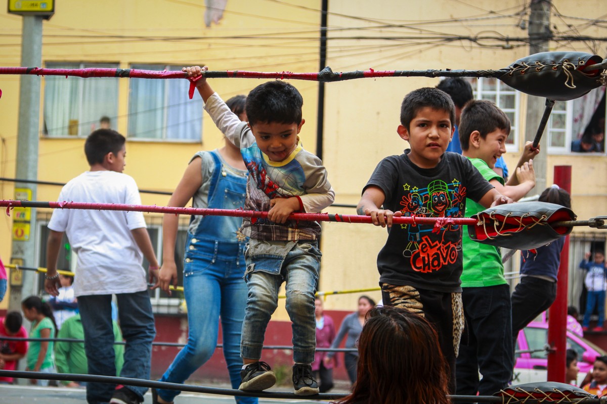 Una exhibición de lucha libre reúne a vecinos y poblaciones callejeras durante las celebraciones por el aniversario del barrio de La Merced las cuales se extienden hasta el barrio de la Soledad y barrio de la Candelaria de los Patos.